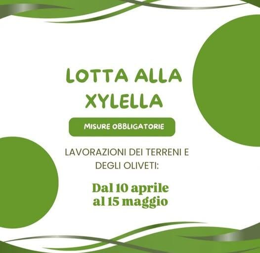 Si informa la cittadinanza che la Regione Puglia ha disposto l’applicazione delle misure fitosanitarie obbligatorie per il contrasto alla Xylella fastidiosa, come previsto dalla DDS n. 39 dell’11 marzo 2026 dell’Osservatorio Fitosanitario.